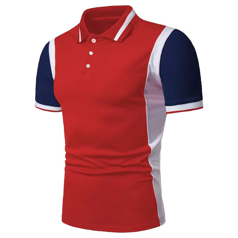 Men’s Fashion Stitching Polo Shirt Casual Short Sleeve Red