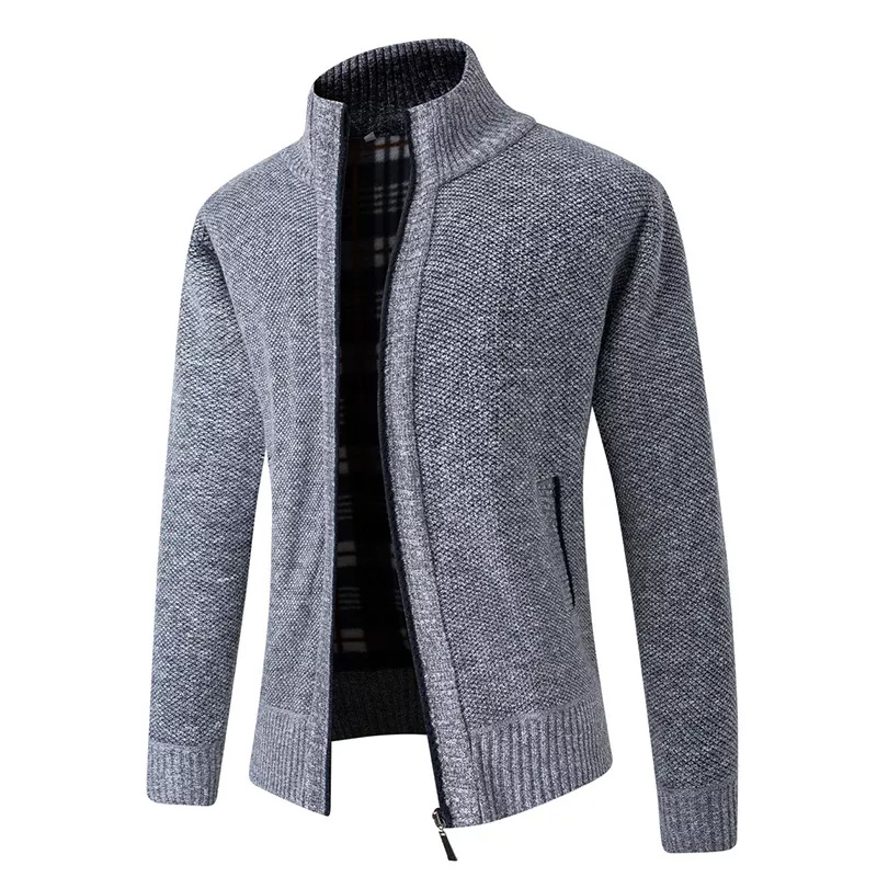 Men’s Cardigan Sweater Knitting Winter Full Zipper Long Sleeve Light Grey