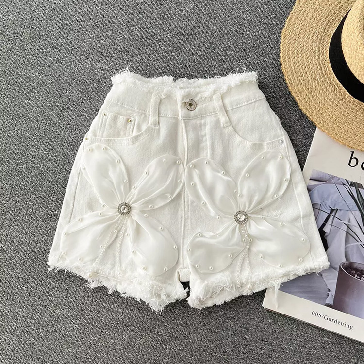 Women’s Three-Dimensional Flowers Lace Up Shorts White