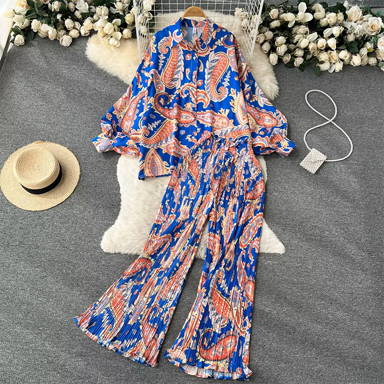 Women’s Elastic Pleated Harem Pants Blue Pink